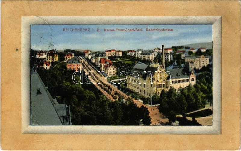 Liberec, Reichenberg; Kaiser-Franz-Josef-Bad, Radetzkystrasse / bathhouse, street (EK)