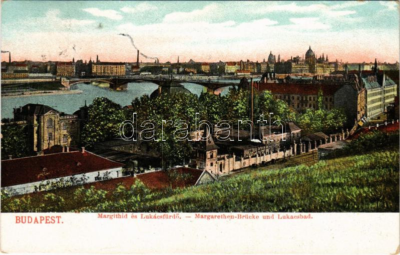 1908 Budapest II. Szent Lukács fürdő, Margit híd (EK)