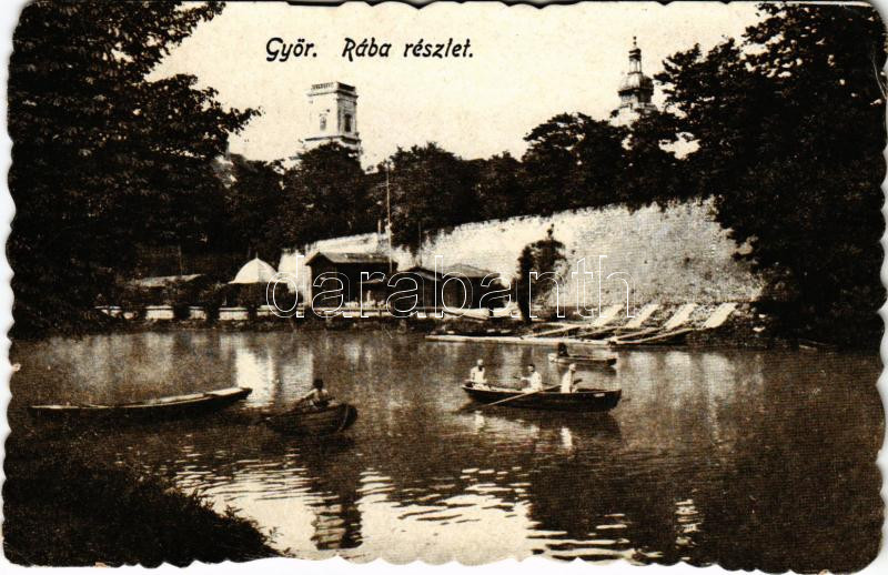 1926 Győr, Rába részlet, csónakázók (EK)