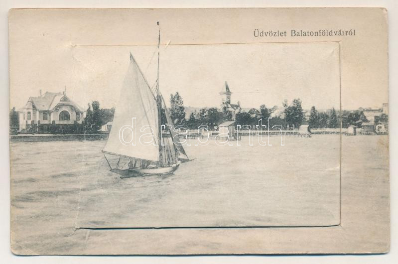 Balatonföldvár, leporellolap 10 mini képpel. Gerenday Gyula kiadása