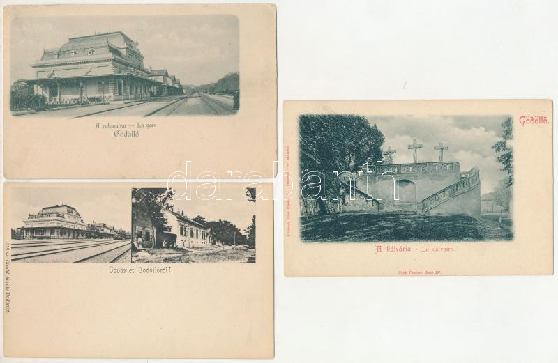 Gödöllő - 5 db RÉGI város képeslap, közte vasútállomás