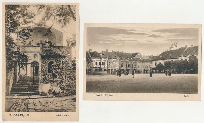 Pápa - 2 db RÉGI város képeslap: Fő tér, kálvária