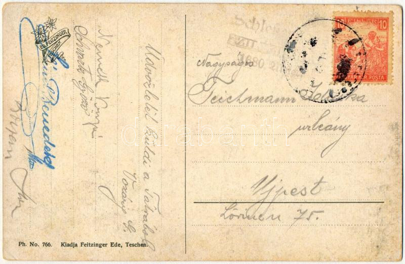 Tátra, Magas-Tátra, Vysoké Tatry; Felkai-tó a Sziléziai ház felé. Feitzinger Ede Ph. No. 766. / Felkersee gegen das Schlesierhaus / lake, tourist house (kopott sarkak / worn corners)