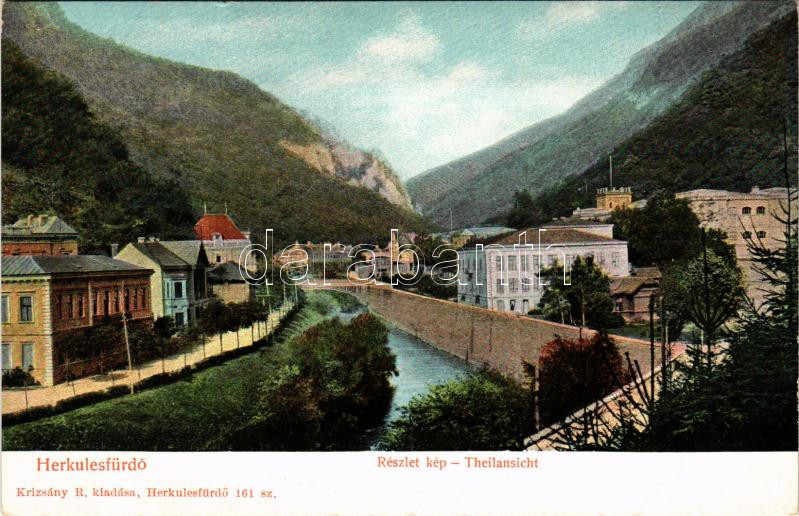 Herkulesfürdő, Baile Herculane; Részlet kép. R. Krizsány kiadása / Theilansicht / view