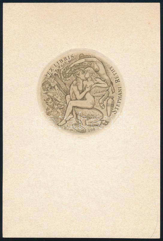 Tempinszky István (1907-1979): Ex libris Stephani Réthy (erotikus könyvjegy). Rézmetszet, papír, jelzett a metszeten, d: 6 cm