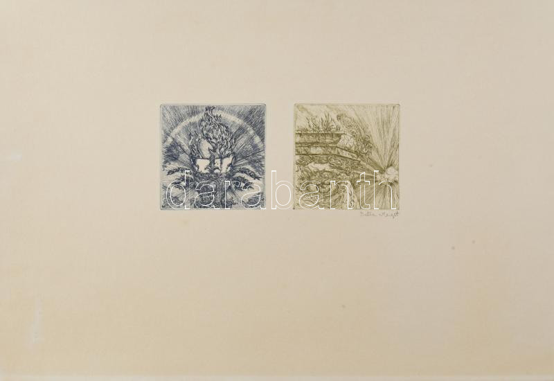 Balla Margit (1947-), 2 db mű egy lapon: Cím nélkül. Rézkarc, papír, jelzett. 8,5×8 (x2) cm.