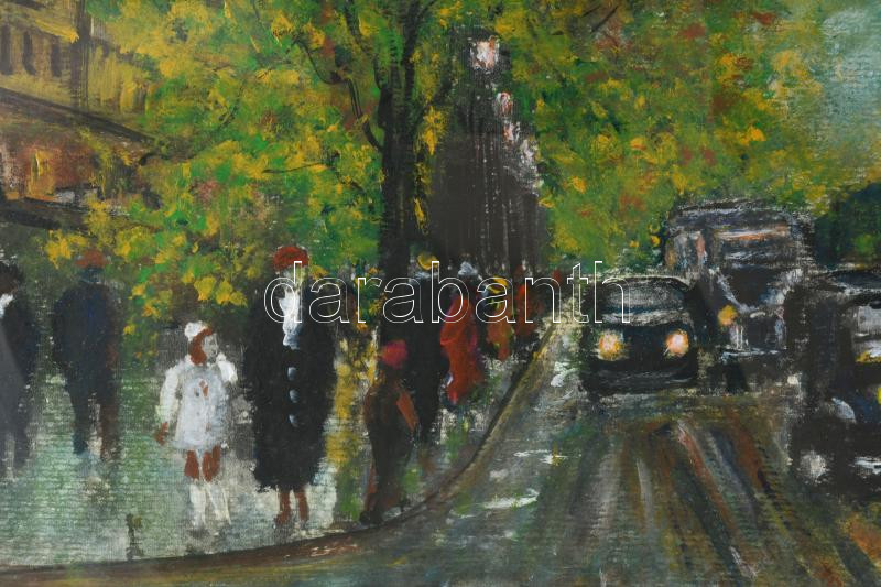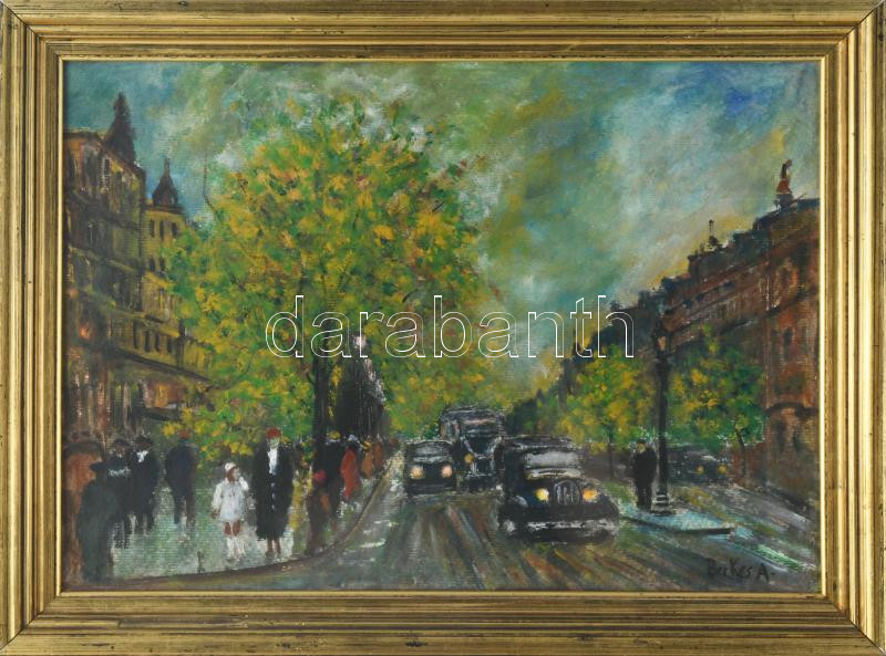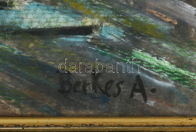Berkes A jelzéssel: Nagyváros forgatag. Vegyes technika, karton. Üvegezett keretben, 30×41,5 cm