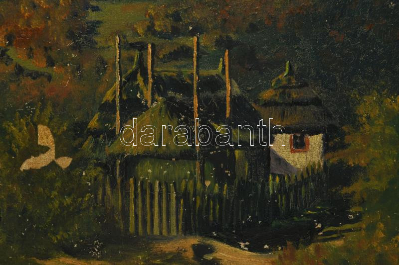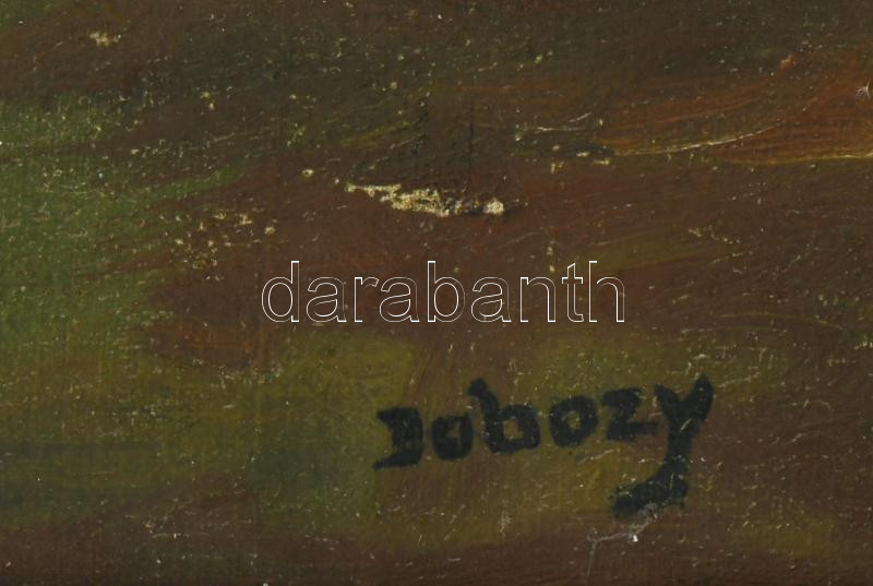 Dobozy jelzéssel: Hegyvidéki táj. Olaj, vászon. Dekoratív, kissé sérült fakeretben. 45x65 cm.