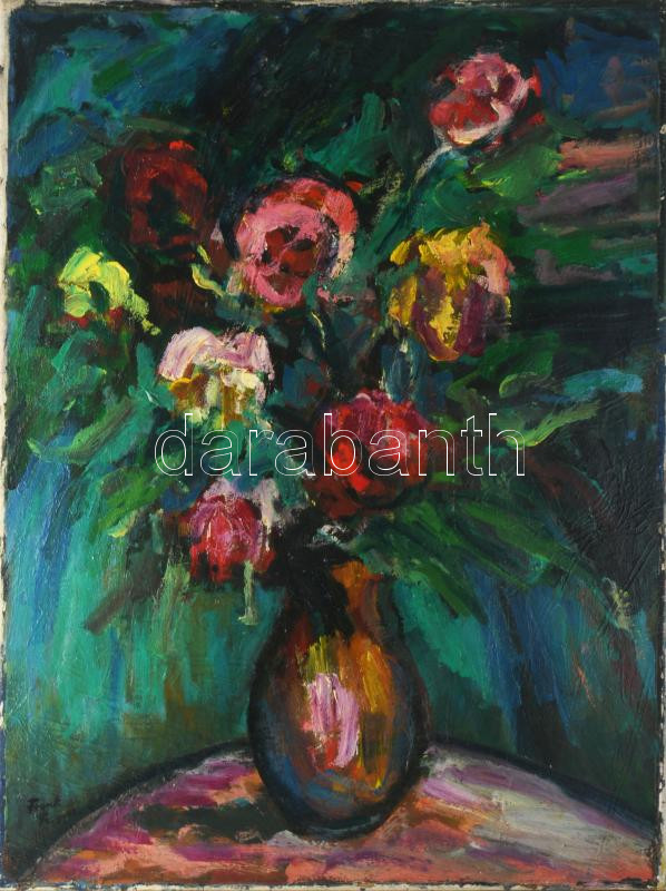 Frank Frigyes jelzéssel: Virágcsendélet. Olaj, vászon. 80×60 cm