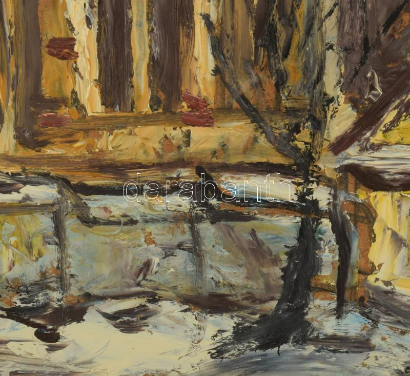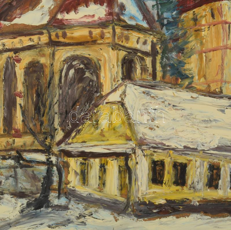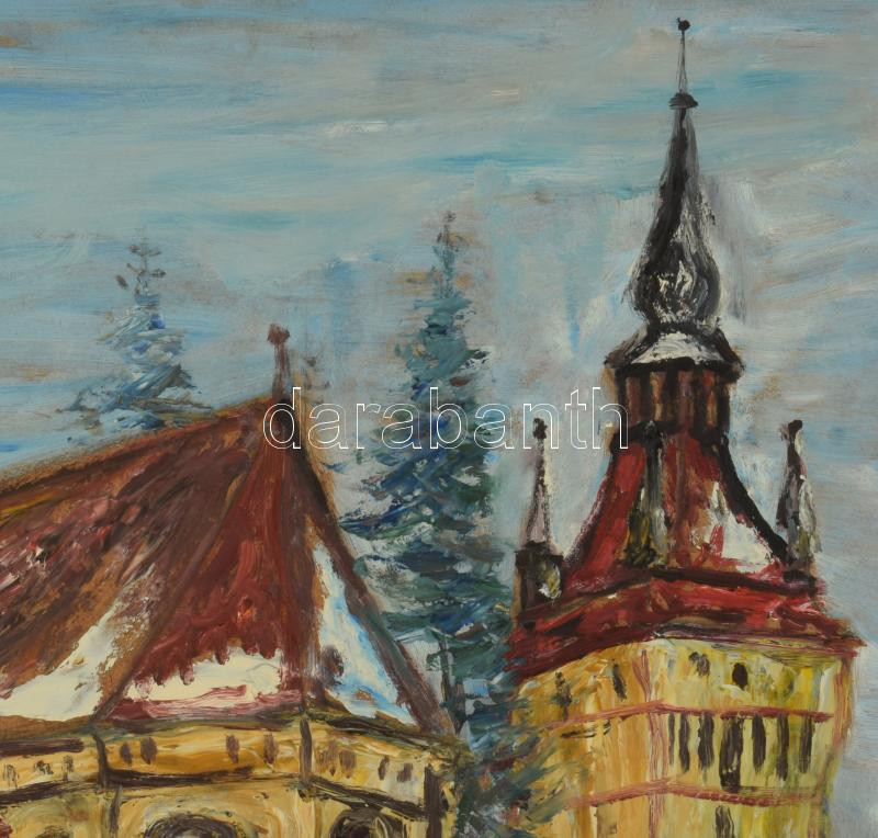 Gruber jelzéssel: Szászkézdi részlet az evangélikus templommal (Erdély). Olaj, farost. 62x51 cm