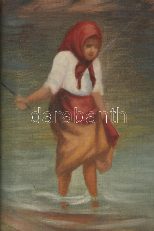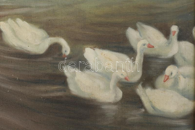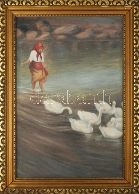 Jelzés nélkül: Libapásztorlány. Olaj, vászon. Dekoratív, kissé sérült fakeretben. 60×40 cm.