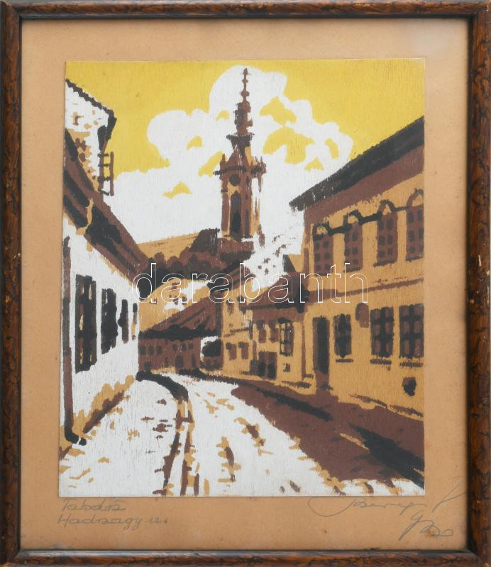Olvashatatlan (Beregi?) jelzéssel, 2 db mű: Szt. Gellért szobor és Tabán, Hadnagy u., 1930 körül Budapest. Tempera, falemez. Üvegezett fakeretben. 18,5x25,5 és 25,5x18,5 cm