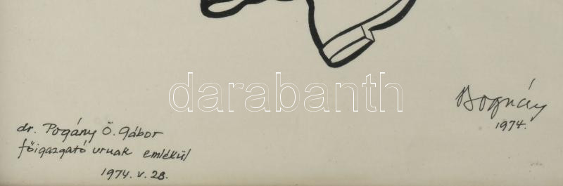 Olvashatatlan (Bognár?) jelzéssel: NÅ‘i alak, 1974. Tus, papÃr, jelzett, ajánlással Pogány Ödön Gábor (1916-1998) művészettörténész, a Magyar Nemzeti Galéria fÅ‘igazgatója részére. Üvegezett fakeretben. 30,5×21,5 cm