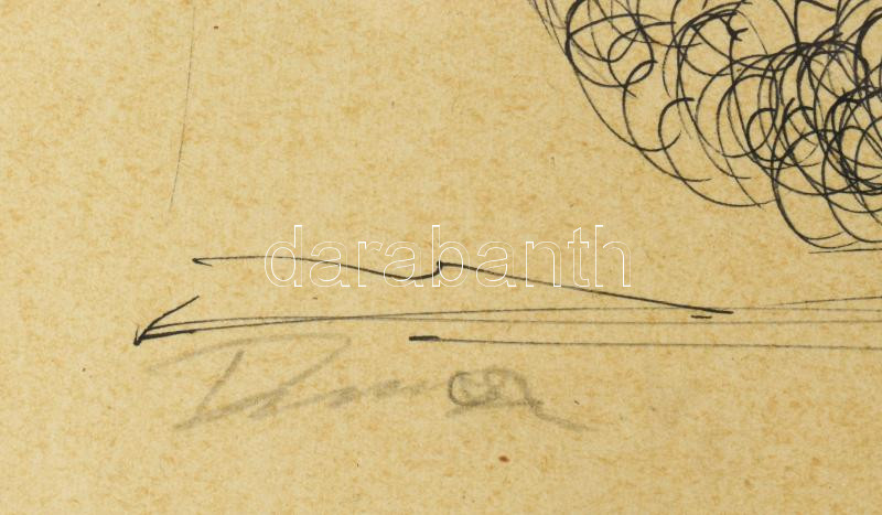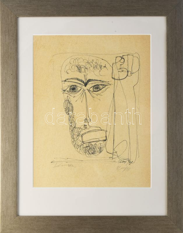 Olvashatatlan (Kass?) jelzéssel: Arckép. Tus, papír. Üvegezett fakeretben. 37x28,5 cm