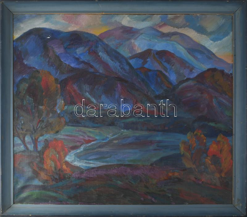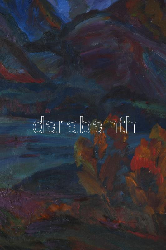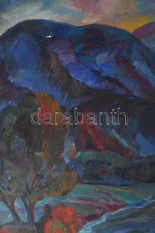 Olvashatatlan cirill betűs jelzéssel: Színes hegyek, 1988. Olaj, vászon. Apró felületi sérüléssel. Fakeretben. 74,5x85 cm