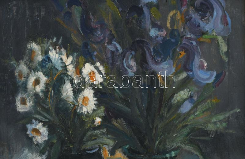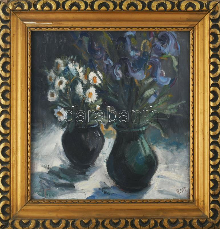 PL jelzéssel: Csendélet, 1957. Olaj, vászon. Dekoratív, kissé sérült fakeretben. 34×32,5 cm.