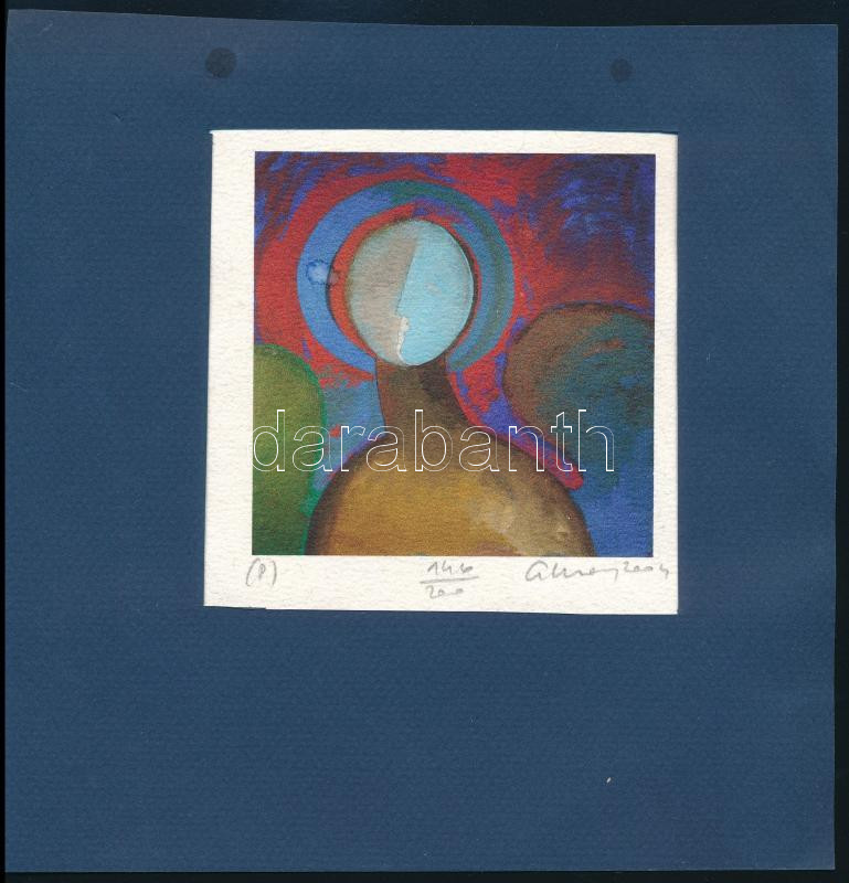 Aknay János (1949-2026 ): CÃm nélkül, computer print, merÃtett papÃr, jelzett, sorszámozott 146/200. 13x13 cm Paszpartuban Hátoldalon Térbe fénybe öltözötten c. kiállÃtásának meghÃvója