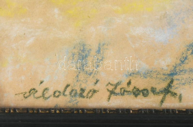 Áldozó József (1892-1983): Lovaskocsi az utcán. Pasztell, papír. Jelzett. Üvegezett, kissé sérült fakeretben. 31x47 cm