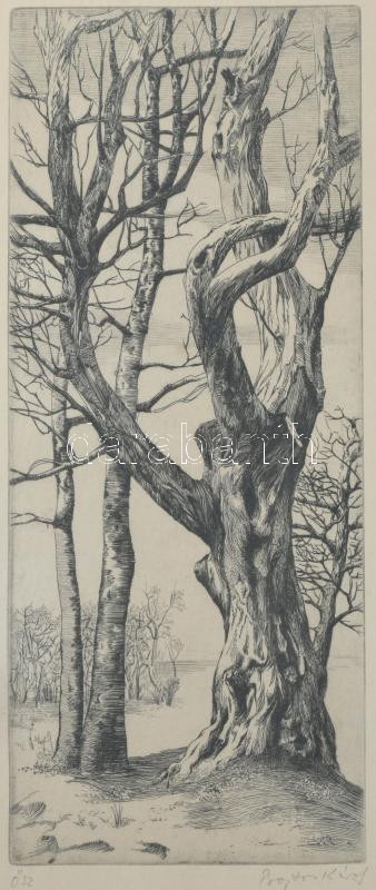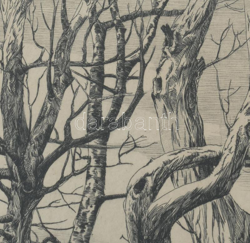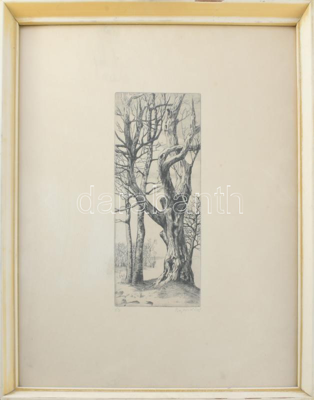 Bojtor Károly (1933-1999): Ősz. Rézkarc, papír. Jelzett. Üvegezett fakeretben. 28x12 cm