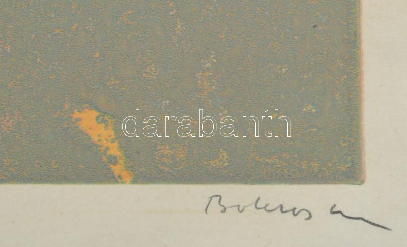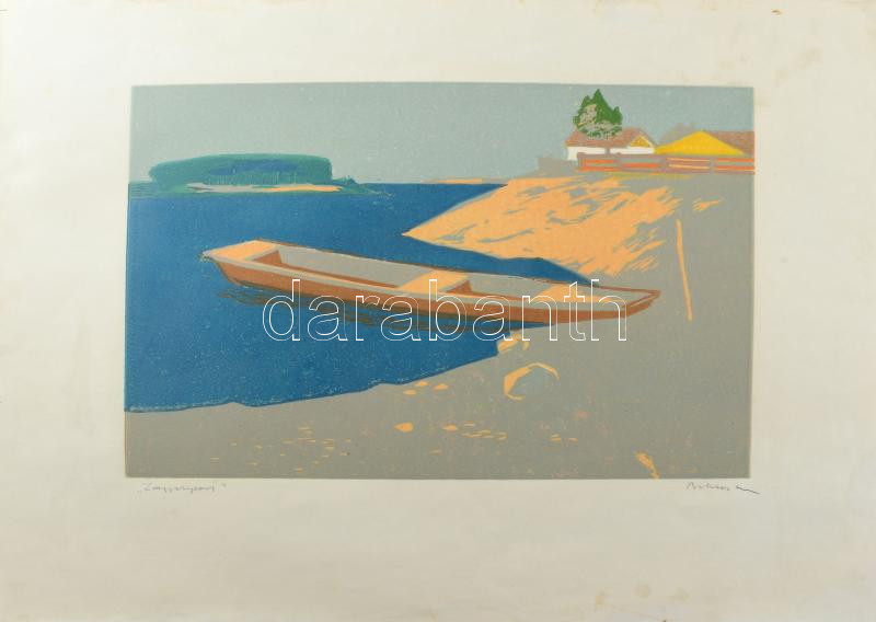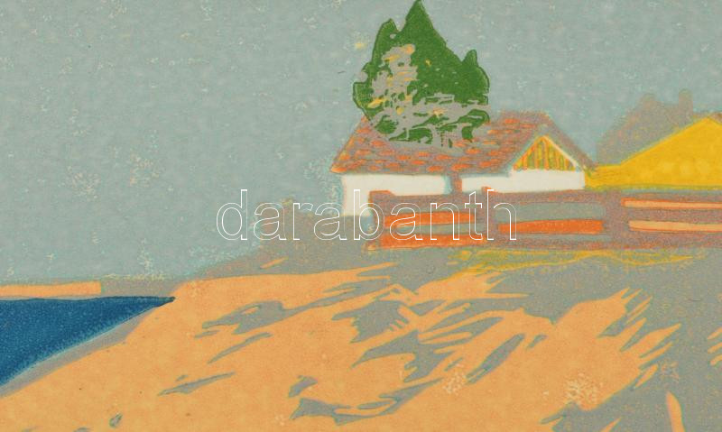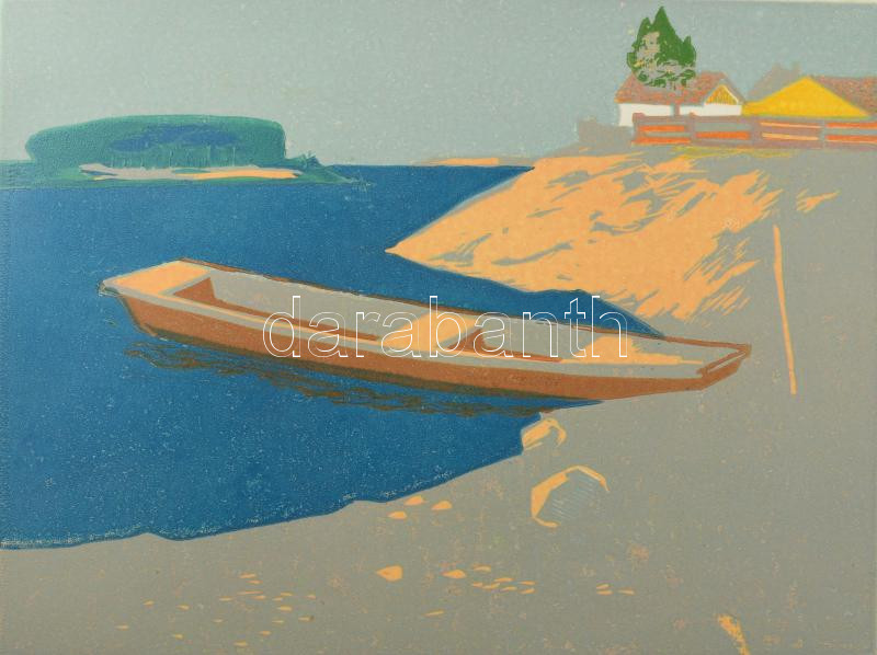Bokros László (1928-2017): Zagyvapart (Szolnok). Linómetszet, papír, jelzett, lapszéli ázásnyomokkal. 25x34 cm