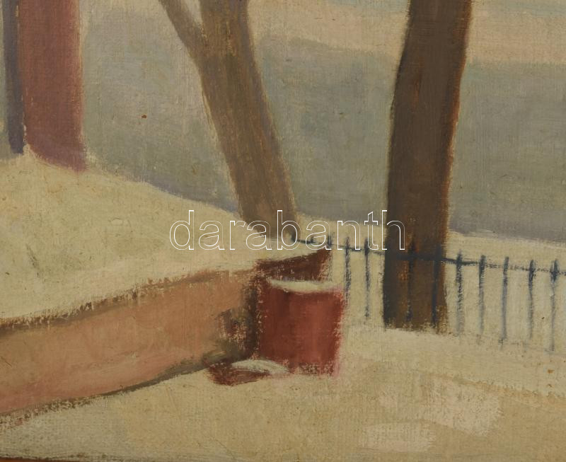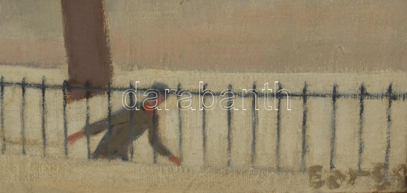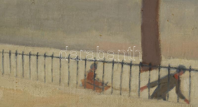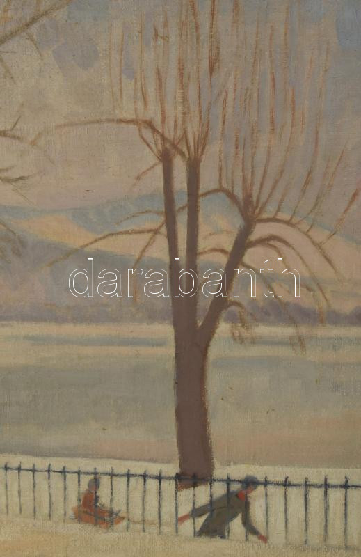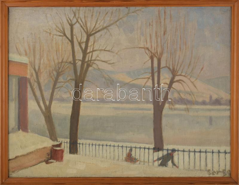Bor Pál (1889-1982): Szánkozók a vízparton. Olaj, vászon, jelezve jobbra lent, fakeretben, 45×60 cm