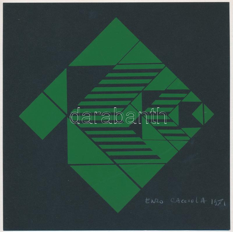 Cacciola, Enzo (1945 - ): Konstruktivista kompozíció (cím nélkül), 1971. Szitanyomat, papír, jelzett. 19,5x19,5 cm. / serigraphy on paper, signed,