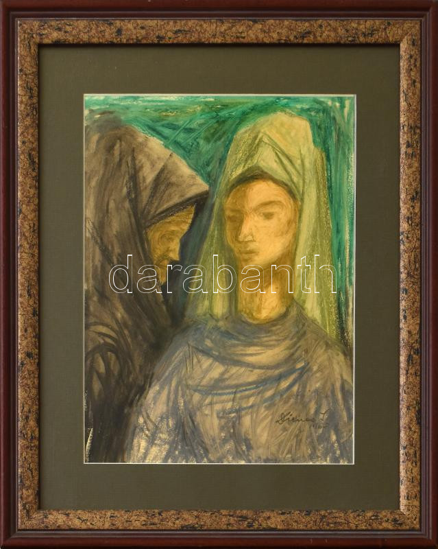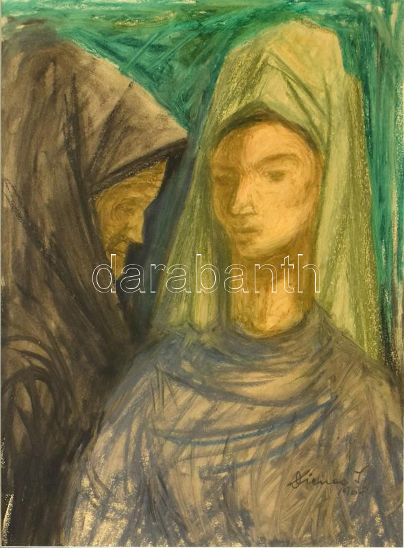 Dienes István (1905-1977): Házasságszerző. Pasztell, papír, jelzett, üvegezett keretben, 26x20 cm