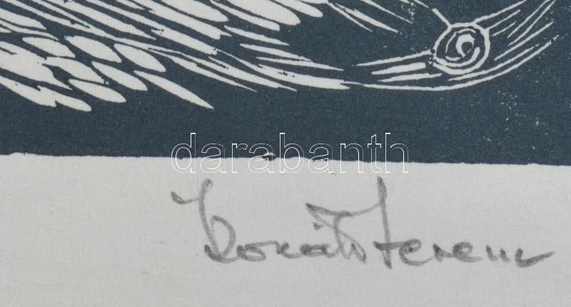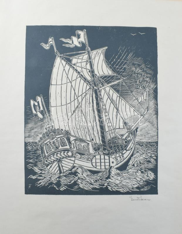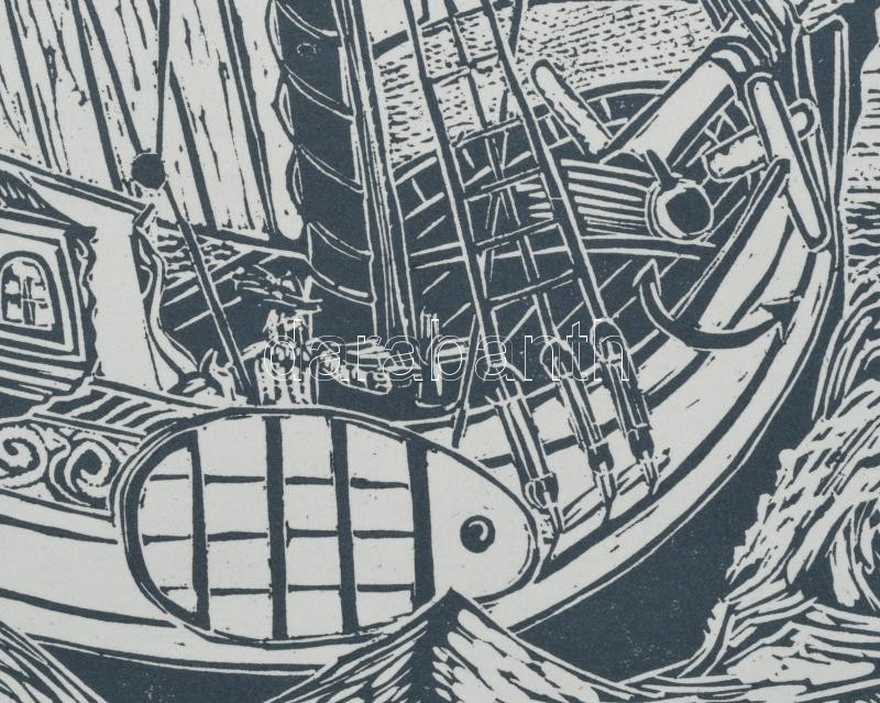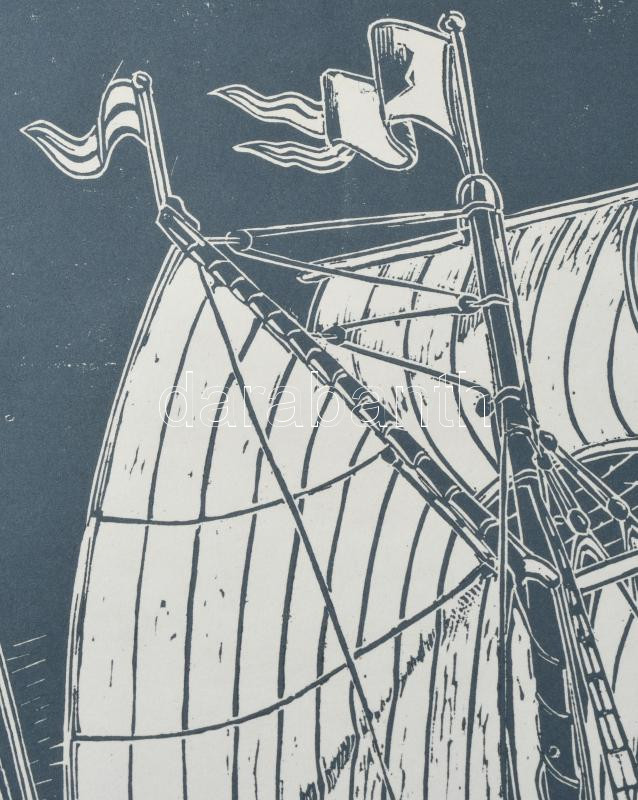 Dr. Székelyudvarhelyi Kováts Ferenc (1913-1997): Vitorlás a tengeren. Linómetszet, papír, jelzett. 33×26 cm