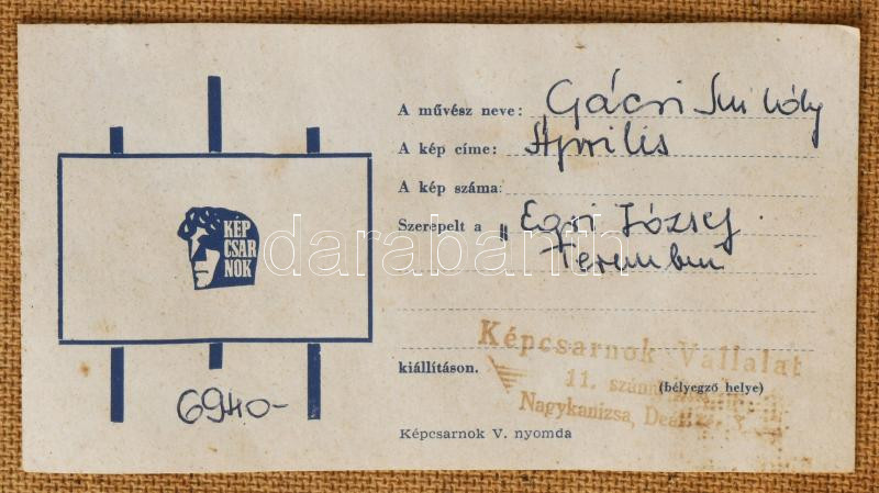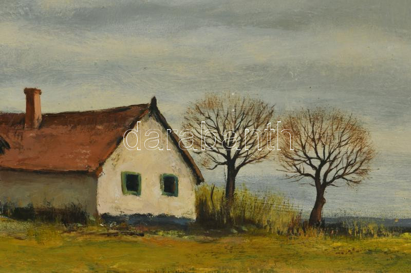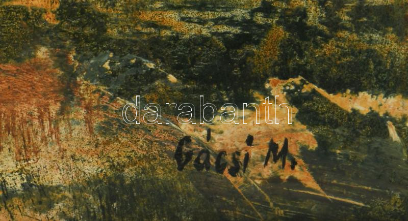Gácsi Mihály (1926-1987): Április. Olaj, farost. Jelzett. Hátoldalán Képcsarnok Vállalat címkéjével. Dekoratív fakeretben. 60x80 cm.