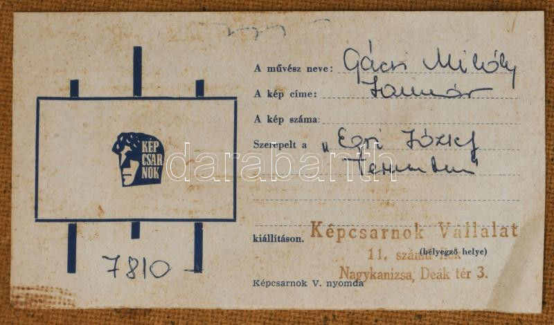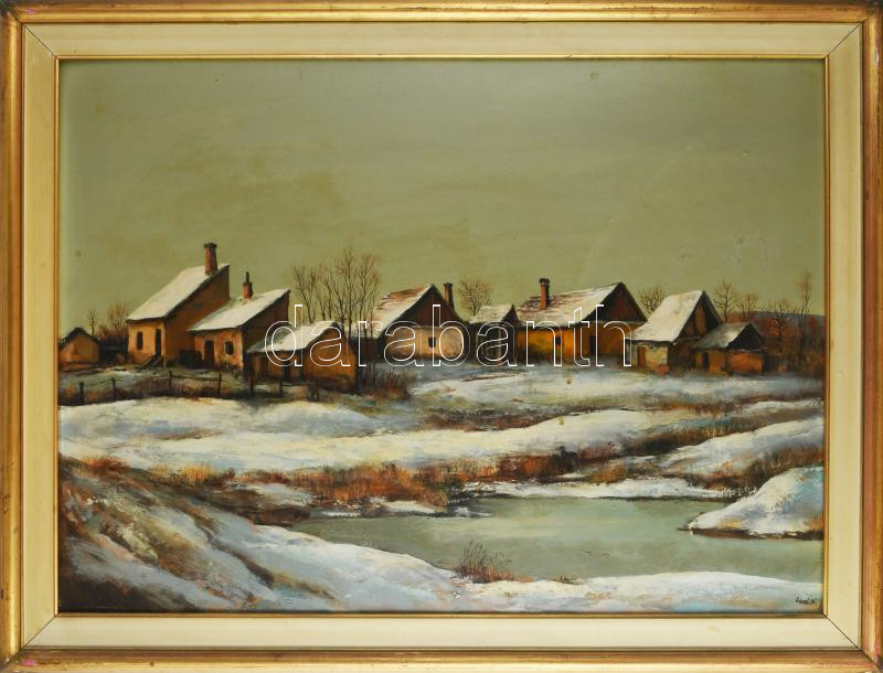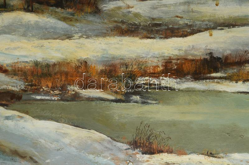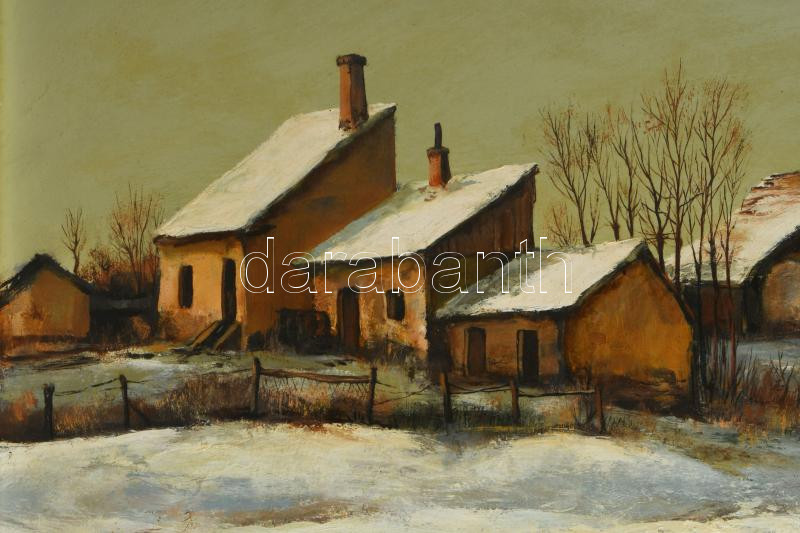 Gácsi Mihály (1926-1987): Január. Olaj, farost. Jelzett. Hátoldalán Képcsarnok Vállalat címkéjével. Dekoratív fakeretben. 60x80 cm.
