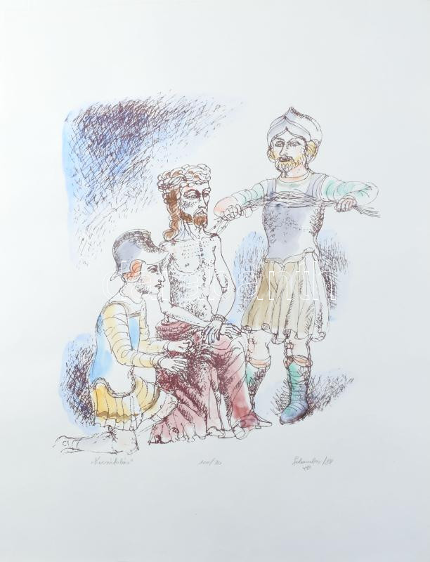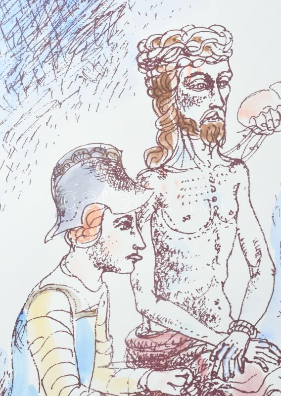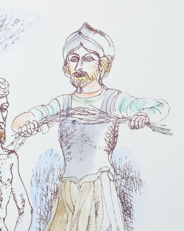 Galambos Tamás (1939-): Kicsúfolás, 1988. Színezett litográfia, papír, jelzett, számozott (100/90). Hátoldalán Képcsarnok Vállalat bélyegzésével. 40x32 cm