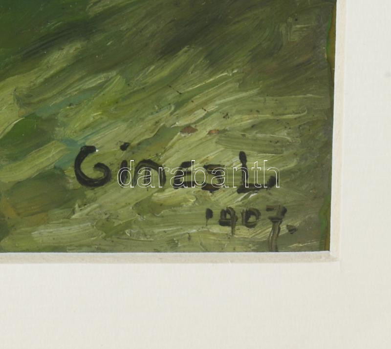 Gimes Lajos (1886-1945): Hegyvidéki táj, 1907. Olaj, papír, jelzett, üvegezett fakeretben, 22×30 cm