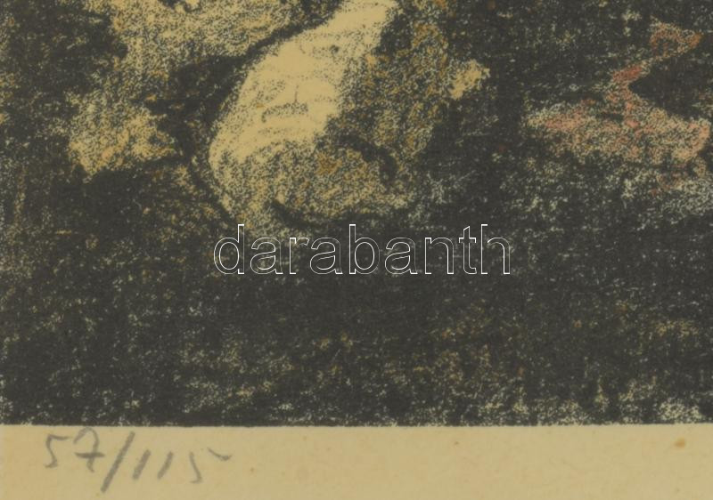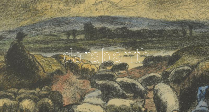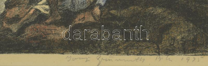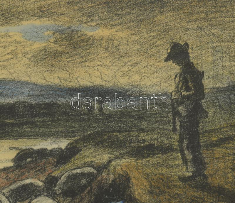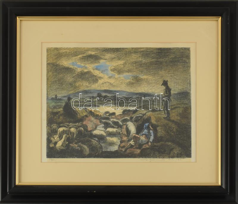 Iványi Grünwald Béla (1867-1940): Pásztorok, 1925. Színezett litográfia, papír, jelzett. Számozott (57/115). Dekoratív, üvegezett fakeretben, 23×30 cm