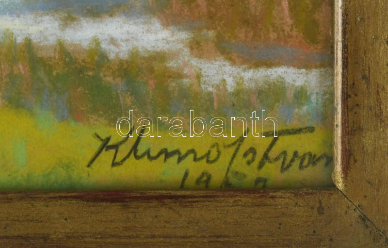 Klimó István (1883-1961): Balaton. Pasztell, papír, jelzett. Dekoratív üvegezett keretben, 32×43,5 cm