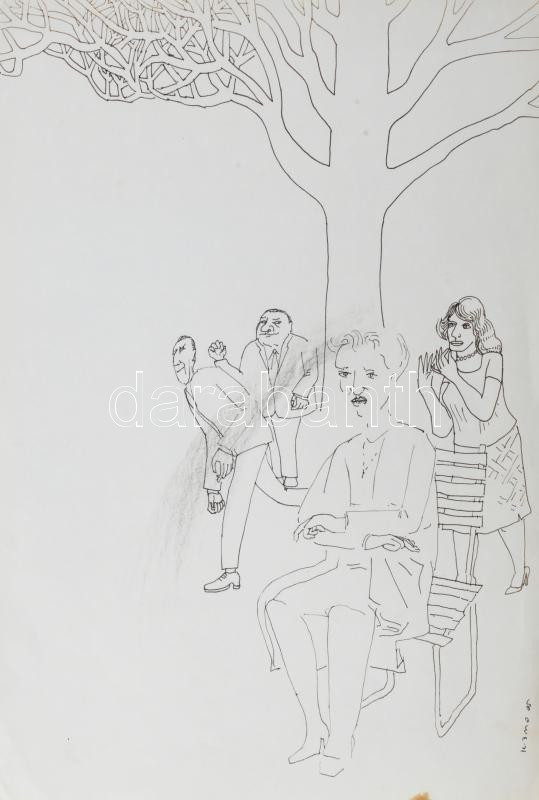 Kozma György (1954-): Társaság (cím nélkül). Tus, papír, jelezve jobbra lent, lap alján apró folttal, 32x22 cm