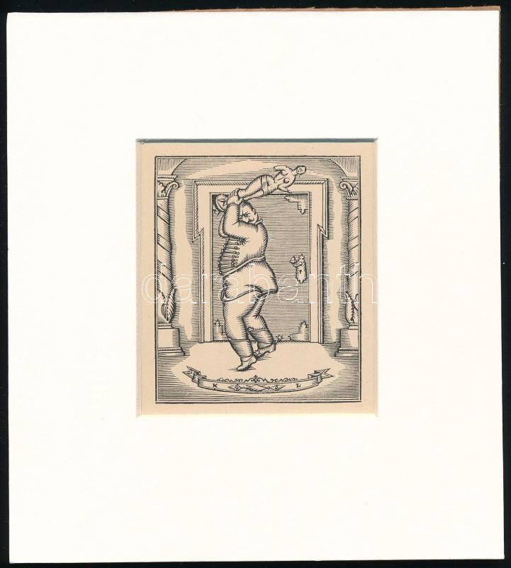Kozma Lajos (1884-1948): Erős huszár. Fametszet, papír, jelzett a metszeten, paszpartuban, 8×6,5 cm