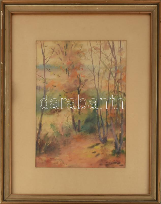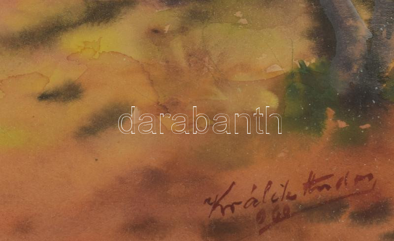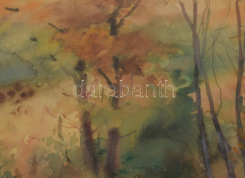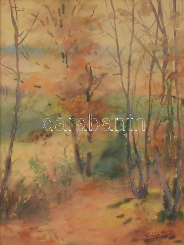 Králik Andor (1908-1981): Lombhullás. Akvarell, papír, jelzett. Üvegezett, kissé sérült fakeretben, 42×32 cm