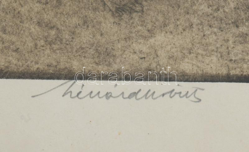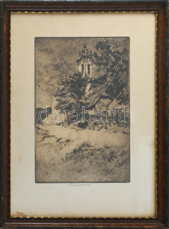 Lénárd Lévy Róbert (1879-1936): Csendes vizek. Rézkarc, papír. Jelzett. Lapszéli ázásnyommal. 30x20 cm. Üvegezett fakeretben.