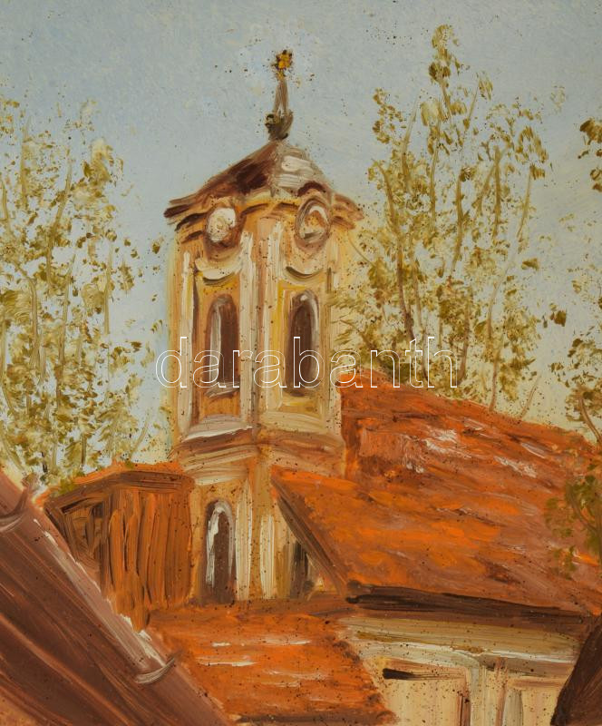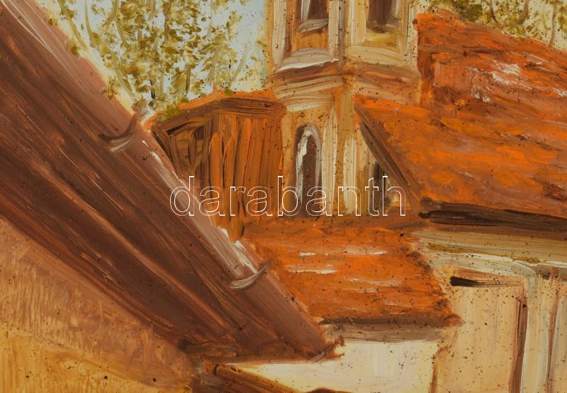 Losonci Lilla (1930 -): Utcarészlet. Olaj, farost, jelzett. Dekoratív, kissé sérült fakeretben. 40x30 cm