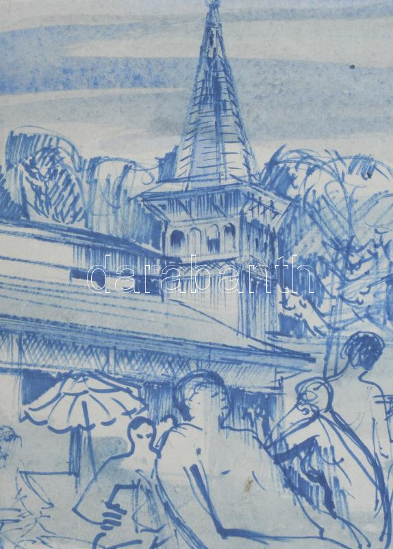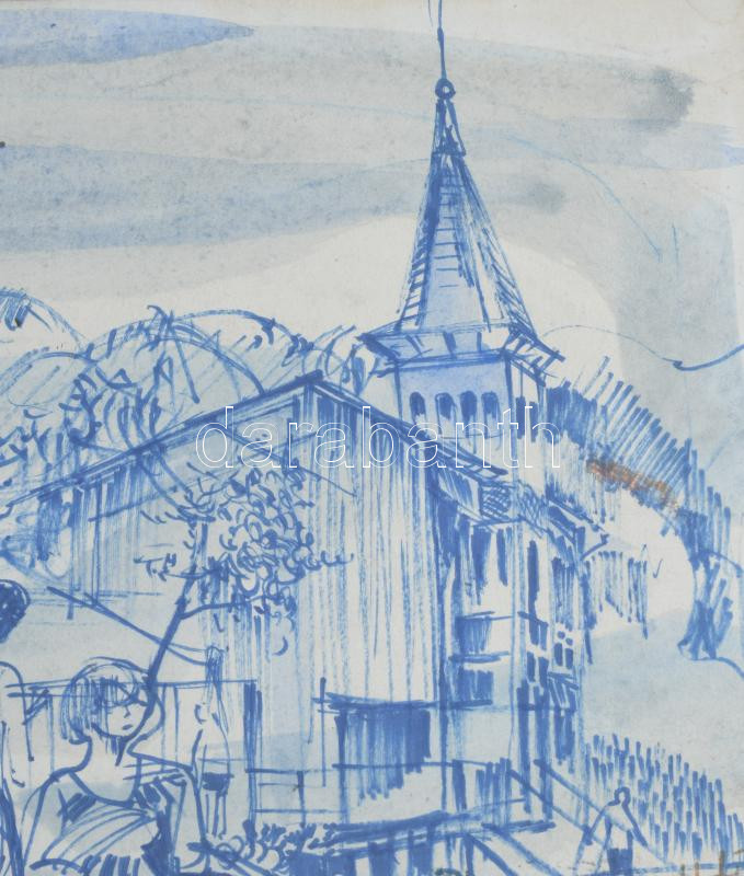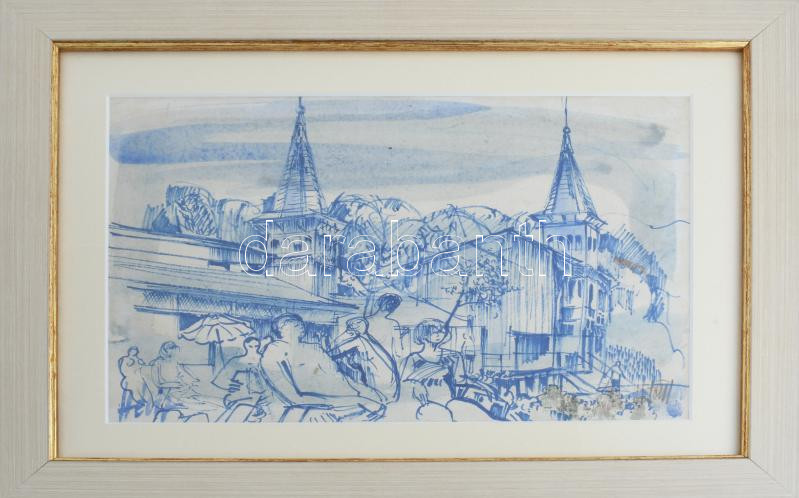 M.Tóth István (1922-2006): Hévizi részlet. Vegyes technika, papír, jelzett, üvegezett fakeretben, 20×30 cm.