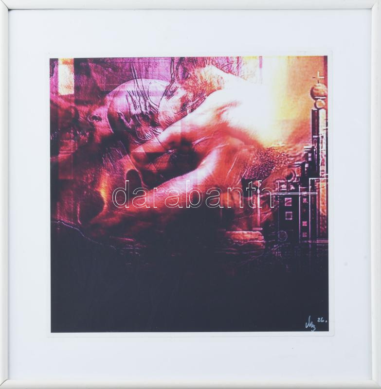 Mezős Béla (1949-): Megbánás, 2026. Computer print, papír, jelezve jobbra lent, üvegezett keretben. 30x30 cm