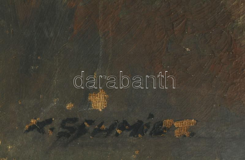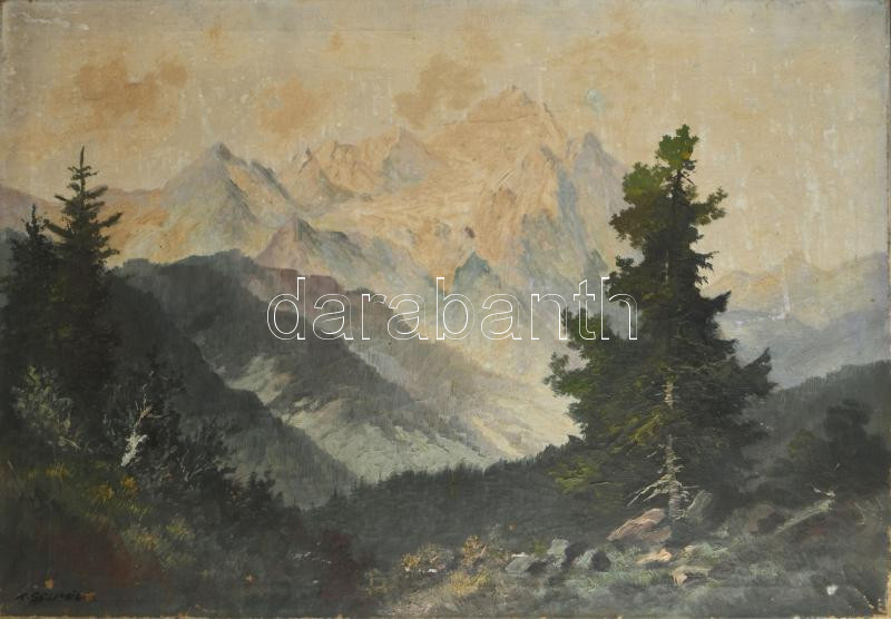 Olvashatatlan (Schmied?) jelzéssel, XX. sz. eleje: Hegyvidéki táj. Olaj, vászon. Javítot, sérült, 70×100 cm