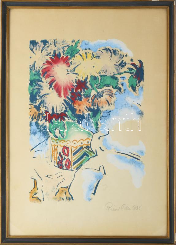 Pécsi Pilch Dezső (1888-1949): Csendélet, 1931. Színezett litográfia, papír, jelezve jobbra lent. Üvegezett, kissé sérült fakeretben. 36×25 cm. /