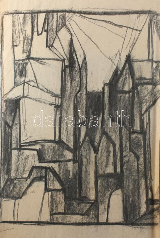 Rác András (1926-2013): Szentendre. Szén, papír, jelzés nélkül. Proveniencia: A művész hagyatéka. 53x45 cm