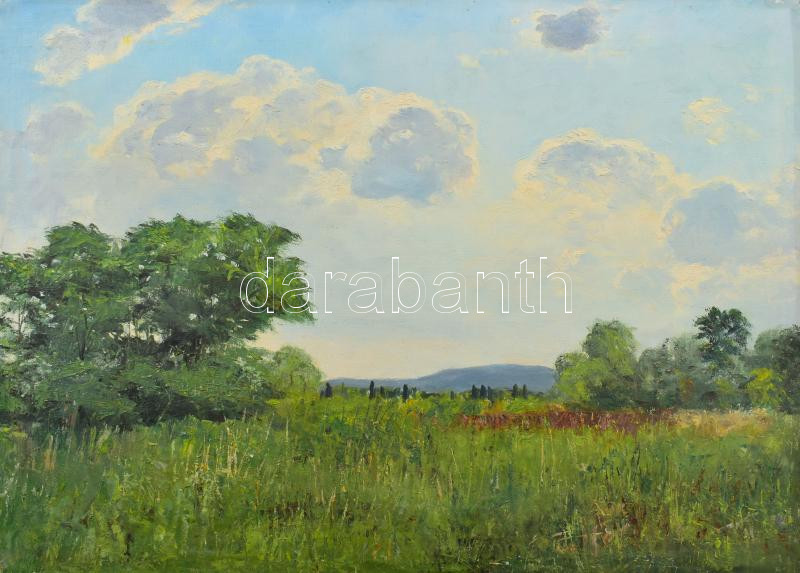 Sárdy Brutus (1892-1970): Napos táj. Olaj, vászon, jelzés nélkül, vakráma nélkül, 42x57 cm