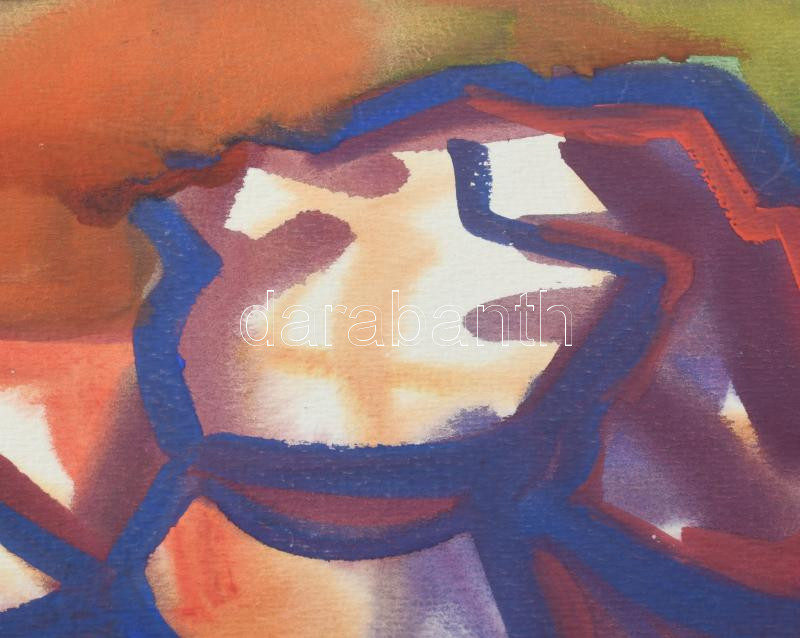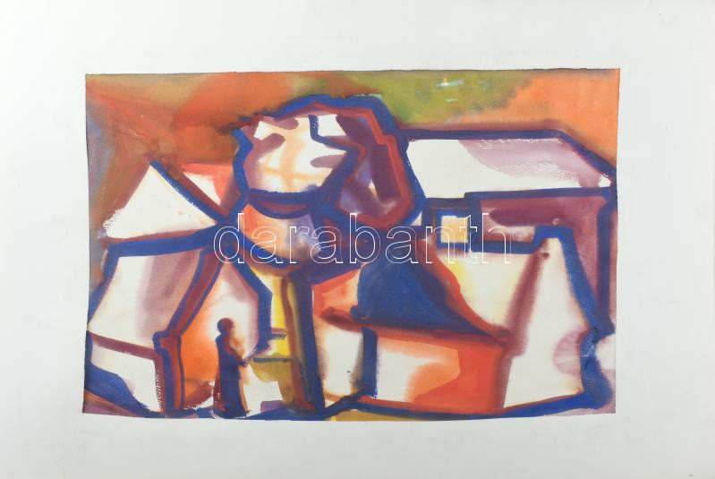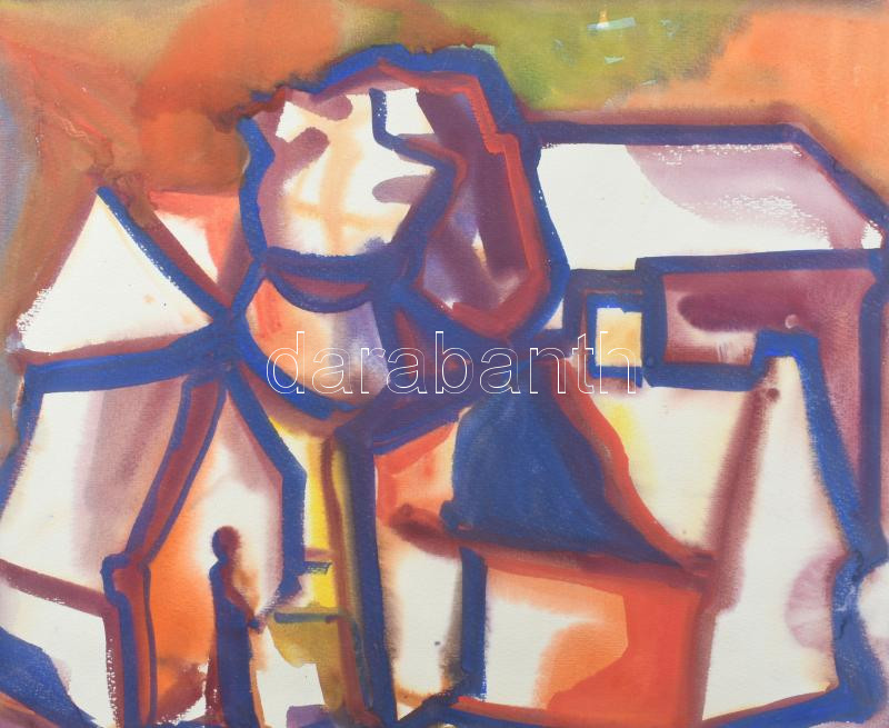 Szabó Klára (-): Ház előtt. Akvarell, papír, jelzés nélkül, a hátoldalán feliratozott, paszpartuban. 32x47 cm