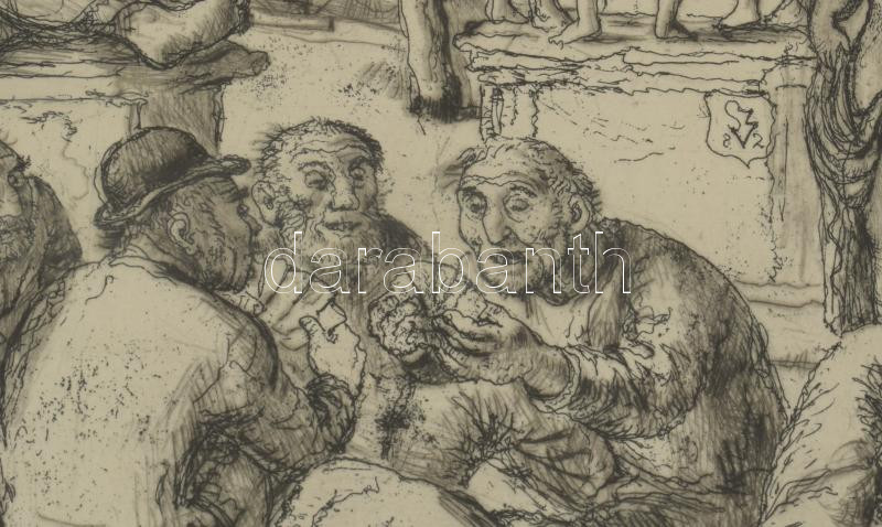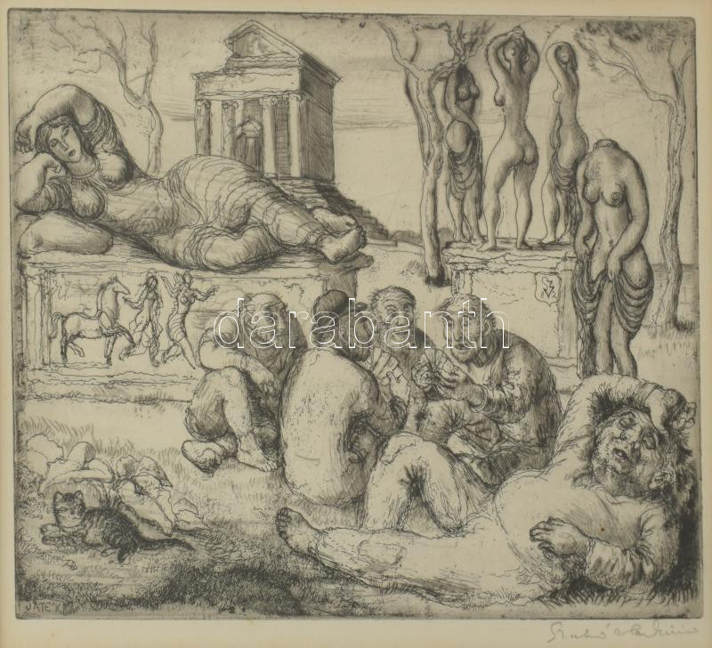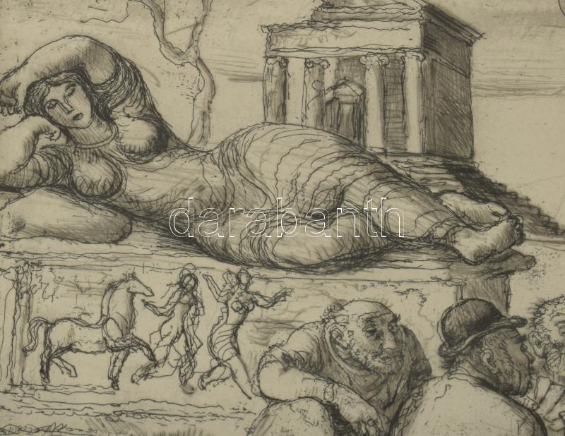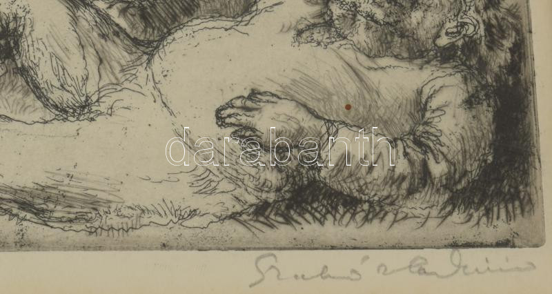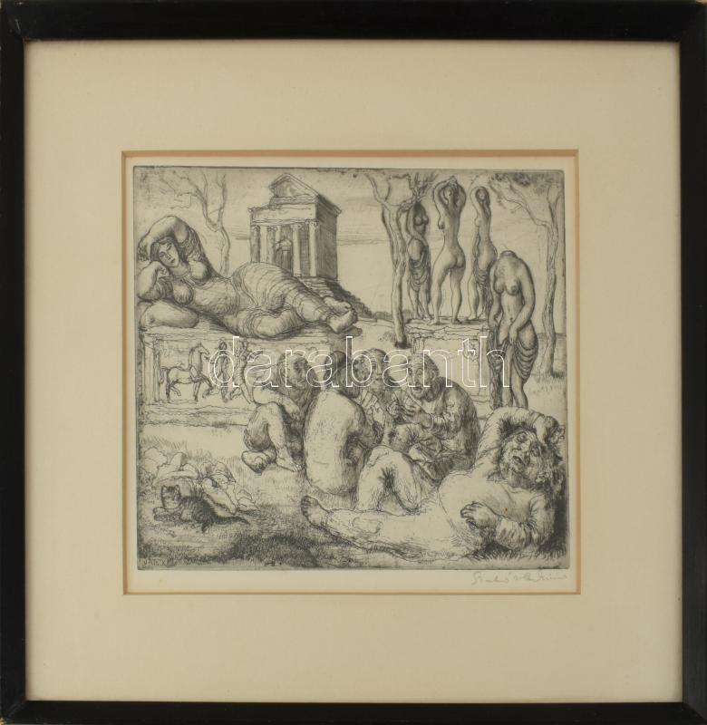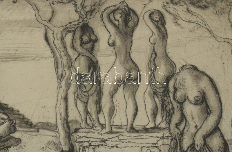Szabó Vladimír (1905-1991): Játék. Rézkarc, papír, jelzett. Üvegezett fakeretben, 18×24 cm
