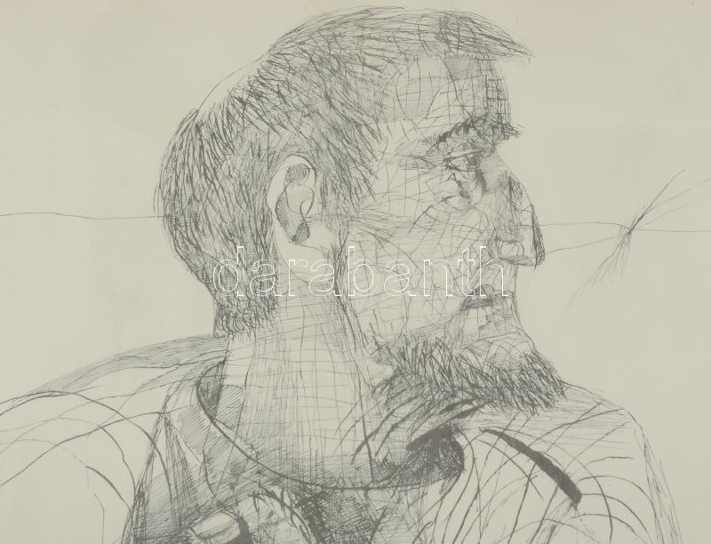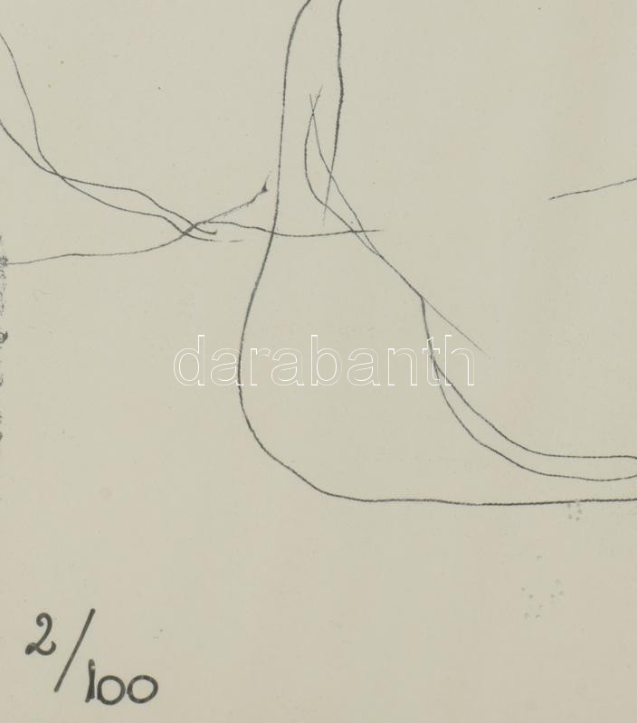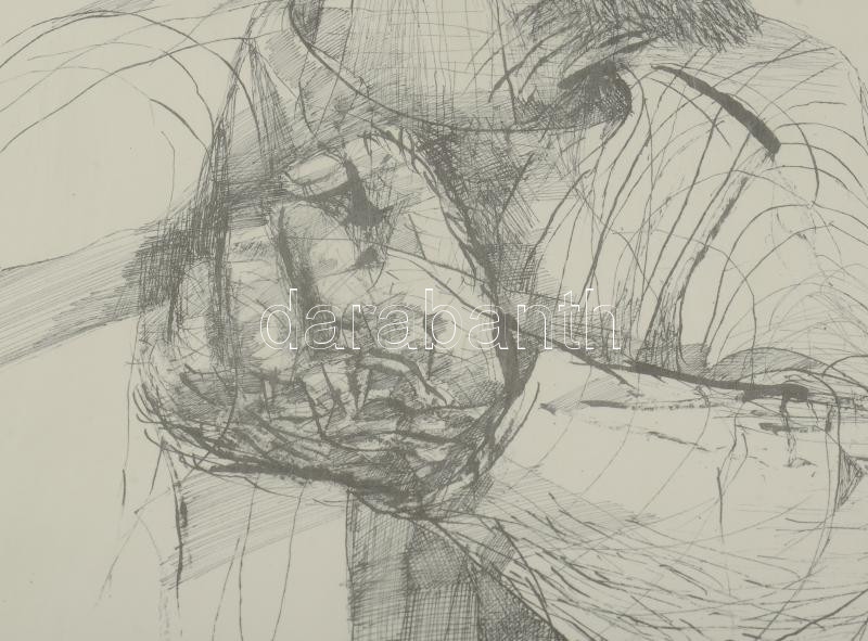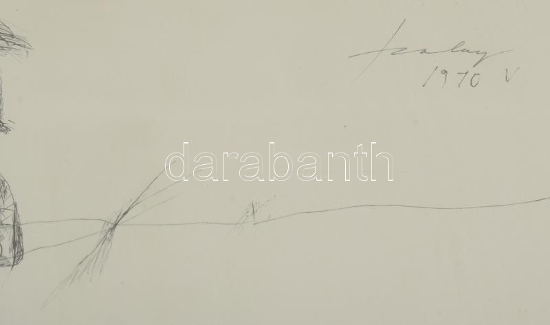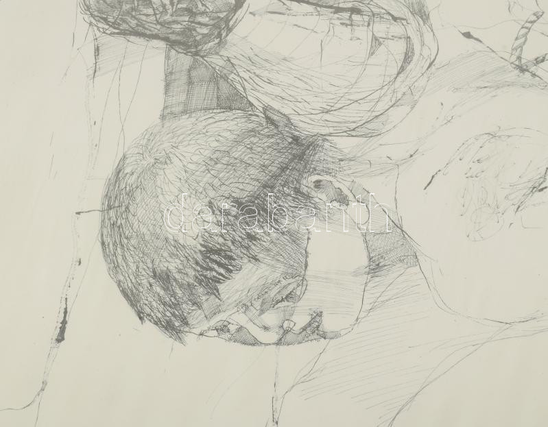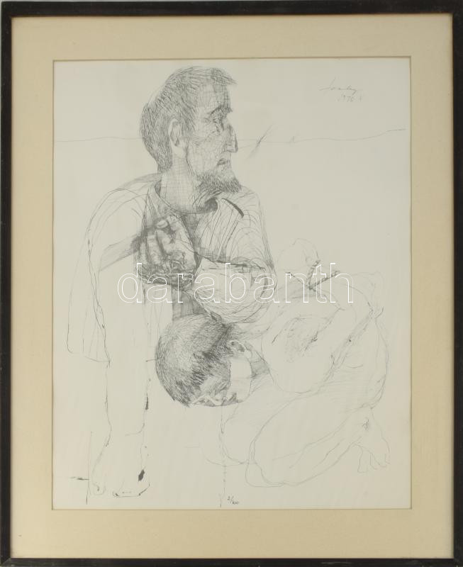 Szalay Lajos (1909-1995): Jelenet. Ofszetnyomat, papír, jelzett a nyomaton, számozott (2/100), üvegezett fakeretben, 56×41 cm