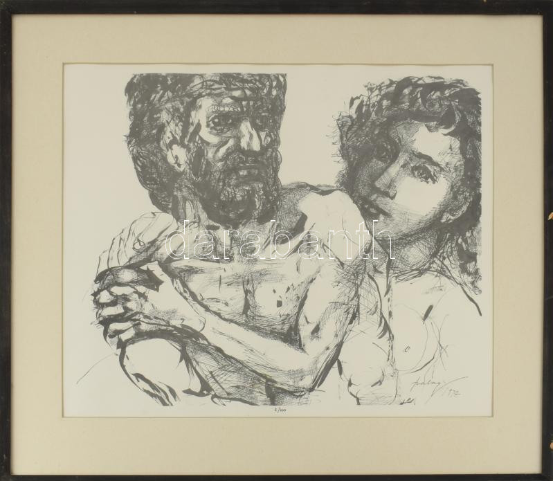 Szalay Lajos (1909-1995): Páros. Ofszetnyomat, papír, jelzett a nyomaton, számozott (2/100), üvegezett fakeretben, 40×46 cm