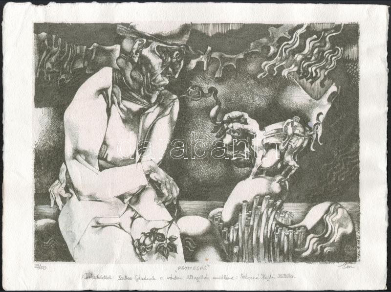 Szász Endre (1926-2003): "Agymosás". Computer print, merített papír, jelzett, számozott (39/50). Szászné Hajdú Katalin ajánlásával Szőcs Géza részére. Apró elszíneződéssel. 25x33,5 cm